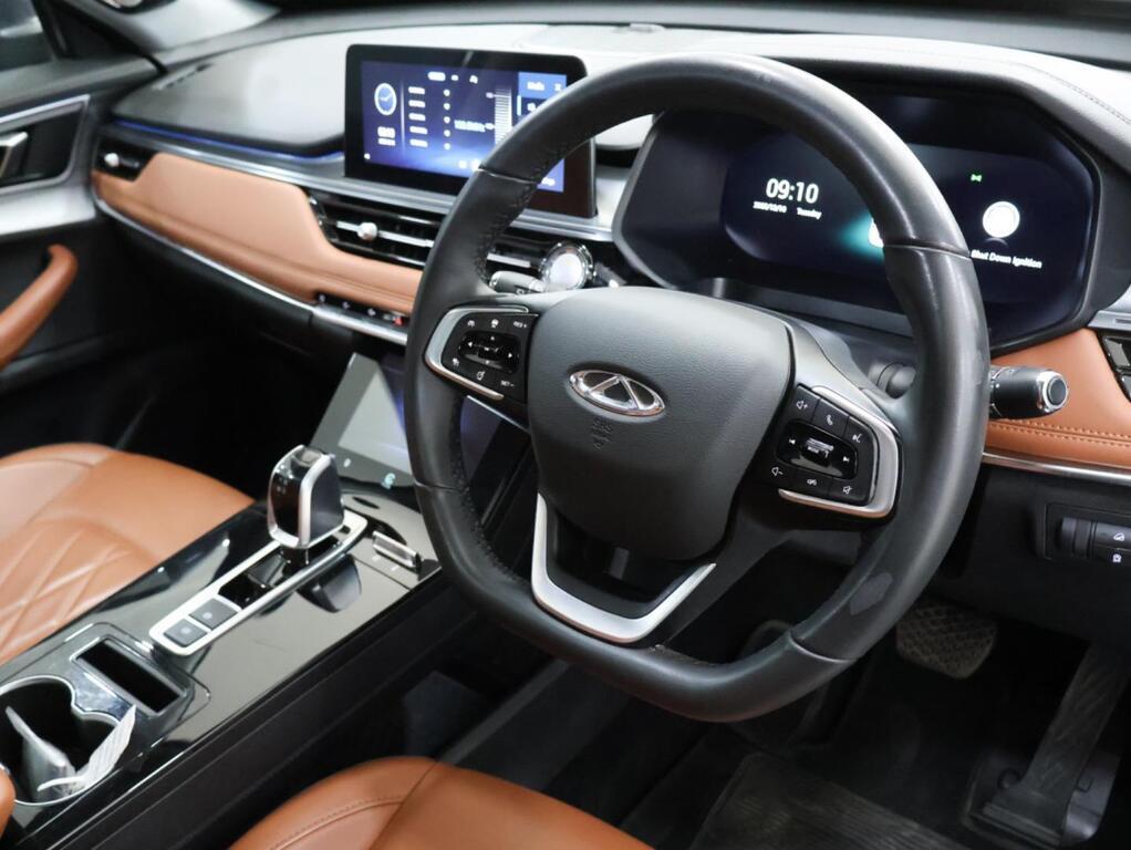 The 2023 Chery Tiggo 8 Pro 1.6T GDI Executive DCT is the top-spec variant in Chery’s Tiggo 8 Pro range, designed to compete in the premium mid-size SUV segment. Powered by a 1.6-litre turbo petrol engine, paired with a 7-speed dual-clutch automatic gearbox and front-wheel drive, it offers a balance of power, refinement, and advanced features. The Executive trim adds luxury touches such as leather upholstery, panoramic sunroof, and advanced driver-assist systems, making it appealing to families and professionals who want SUV practicality with premium comfort.